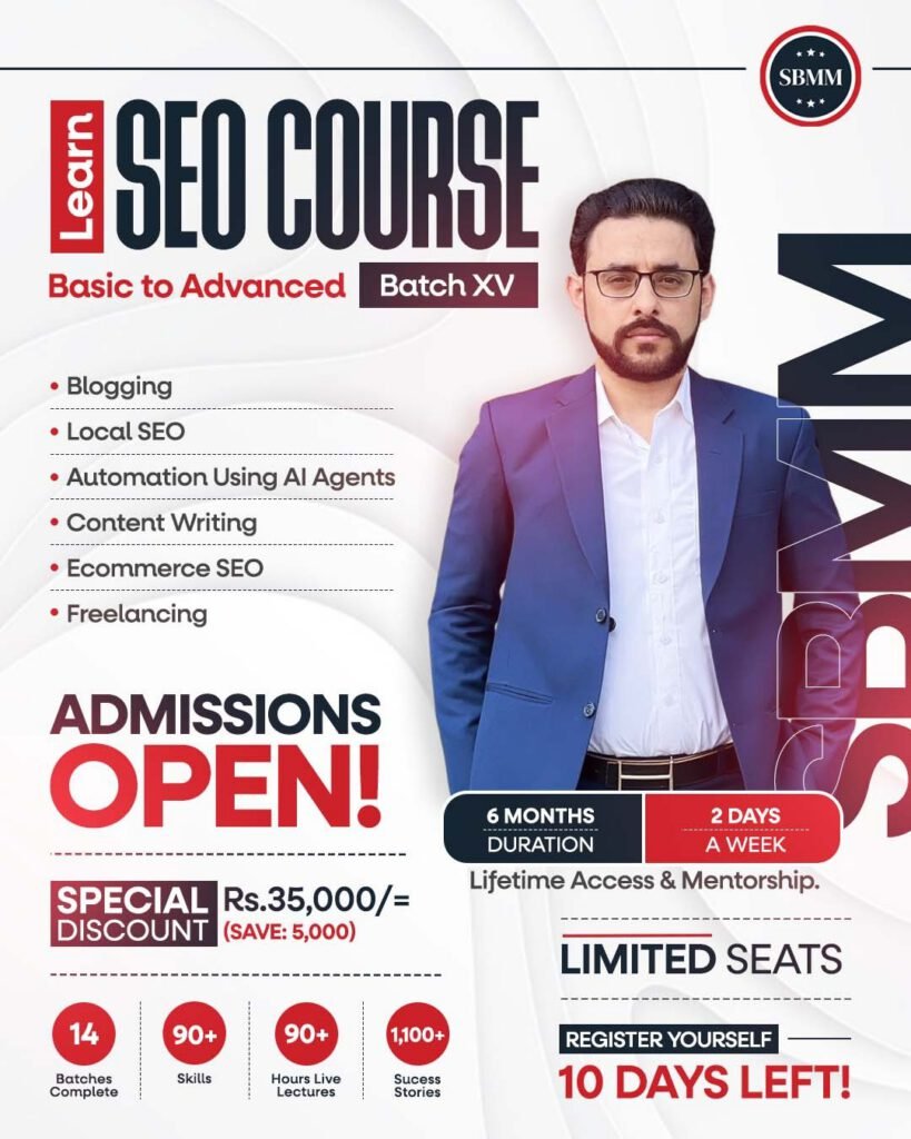 Search Engine & Blogging Mastermind Master SEO & Digital Marketing with SBMM - Practical, Live, Result-Oriented! Best SellerLive ClassesBasic to Advance Levels PKR 45000 Enroll Now